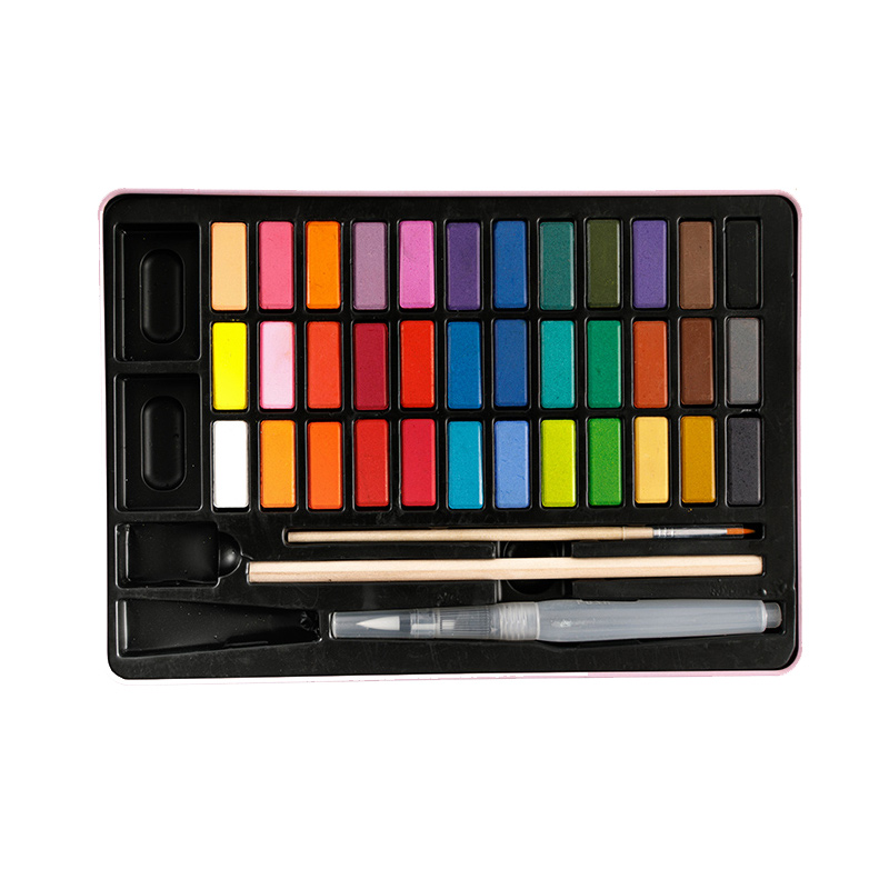 36 रंगों का यह पैकेज आपकी उत्कृष्ट कृतियों को बनाने के लिए एकदम सही है। एक धातु का डिब्बा, एक पानी के रंग का ब्रश और चौकोर टैबलेट शामिल हैं। और इसे व्यवस्थित रखने के लिए मजबूत धातु का मामला। अपने सपनों की उत्कृष्ट कृति को चित्रित करने के लिए बिल्कुल सही!